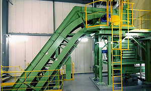 廃棄物の搬送と同時に収集袋を切り裂き、袋と中身を分離します。また袋は自動的に回収されます。