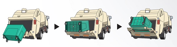 - マンション、アパート、住宅、銀行、役所、農協、ホテル、学校、病院、寮、工場、公園、スーパー、デパート、ガソリンスタンド、レストラン、駅ターミナル、映画館、劇場、地下街、野球場等で、衛生的なごみ収集が行われています。