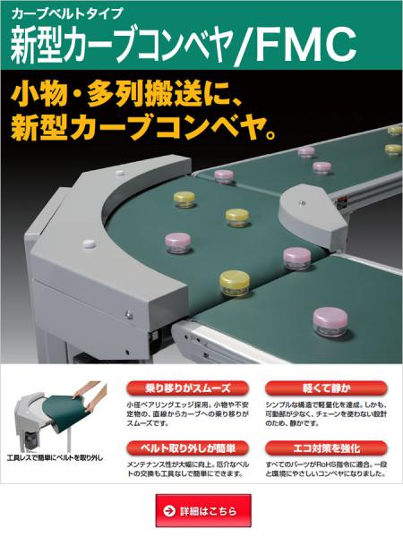 小物搬送の決定版。安心・安全の新鮮技術。もっと環境に優しく、もっと安全に、もっと便利に。スタンダードなコンベヤシリーズ。 エコ・安全・省メンテを強化。小さなボディで多彩な機能満載。 ストレート搬送から傾斜搬送、バラ物搬送など豊富なラインアップ。