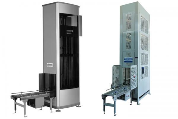 小もの品からケース品まで。階上、階下へ確実に製品を運ぶ垂直搬送コンベヤ。