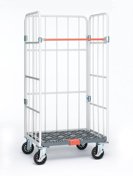 保管と運搬を1台で処理する運搬用カゴ車(カゴ台車)です。