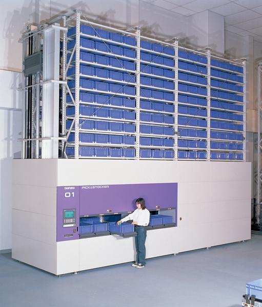 コンテナやケース単位の小物保管に最適な高速小型立体自動倉庫。電子部品や日用雑貨品の保管にも最適。
