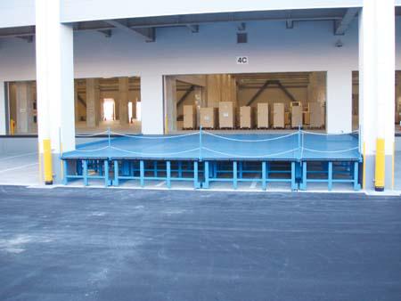 コンテナステージはフォークリフトでの移動可能な簡易型プラットホームです。コンテナステージを設置することによりウィング車を縦に着ける事が出来ます。また使用しない時はネスティングによる段積収納が可能です。スロープと組み合わせることで、フォークリフト作業も自由な乗り降りが出来ます。